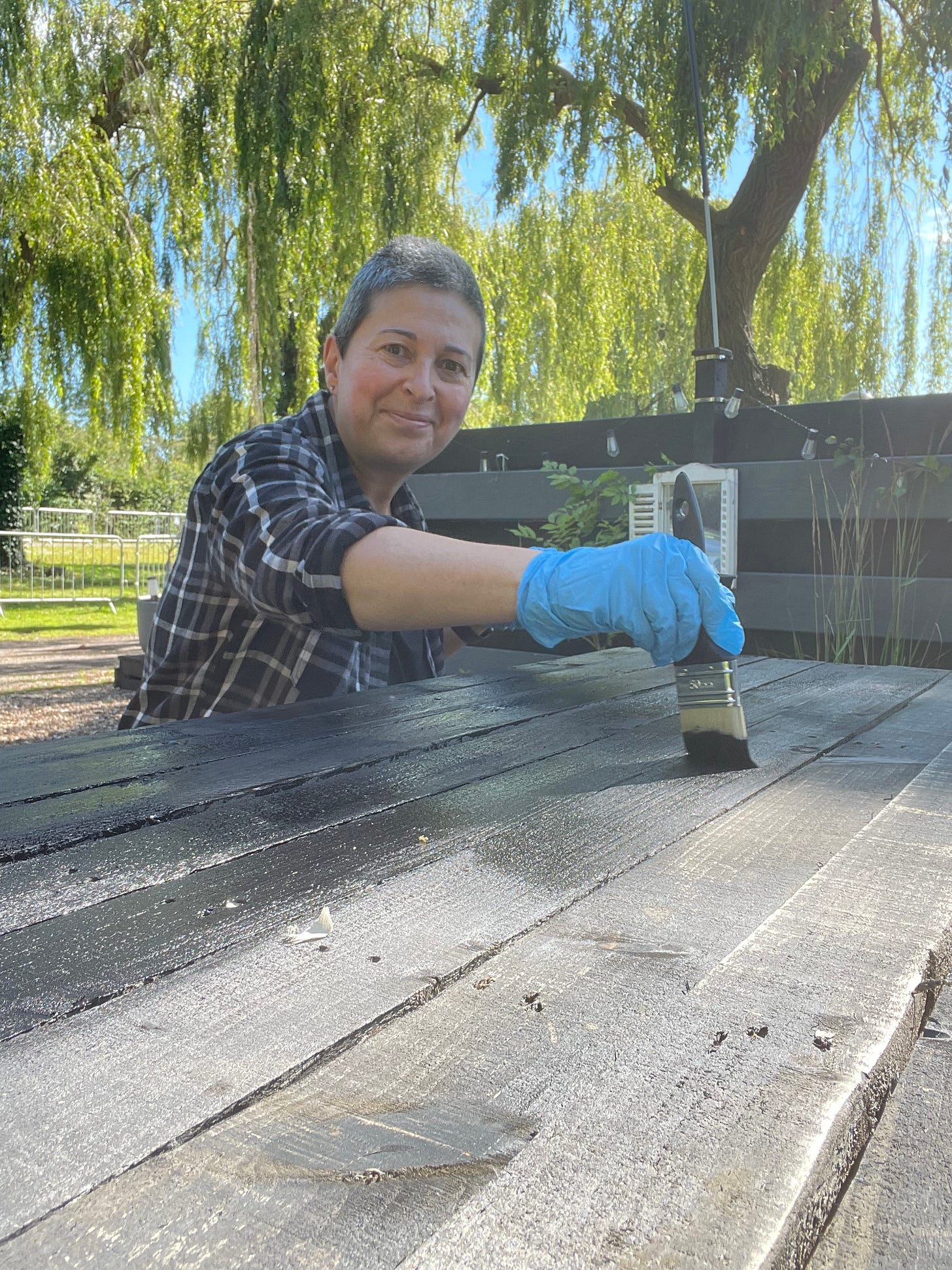 Anyway back to the wood! In renovating my Lodge, l began to witness a real shift in my mental health alongside a new found sense of connection with what l was creating from scratch. My hands on wood, in paint and soil. l started to consider what l could repurpose, to save from using landfill, this included the kinds of paints l was choosing as well as furniture and yes of course WOOD!. Building, creating and painting large exterior pieces as well as crafting small interior ideas and pieces my interest and kinship began to grow further.