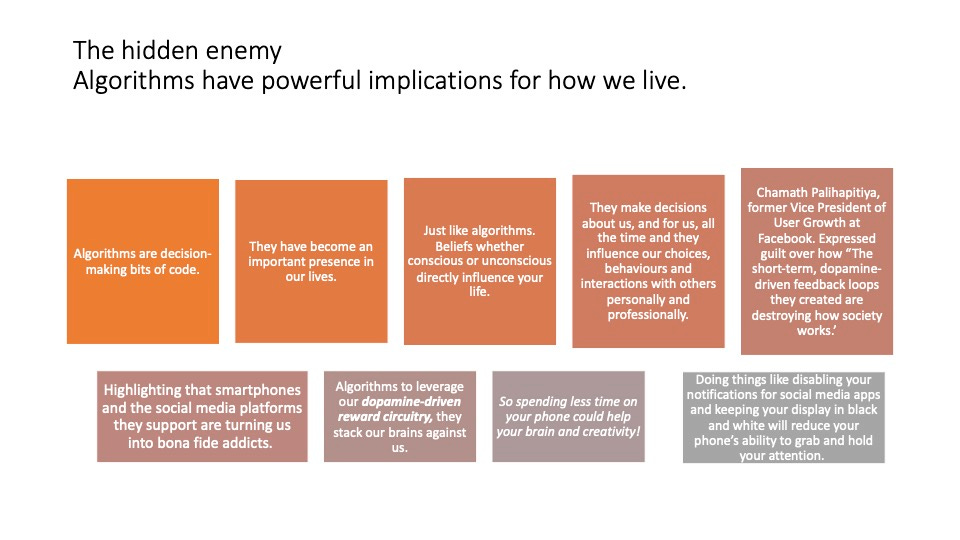 Digital Dependency and Distraction decrease our Dopamine levels which effect our inspiration, creativity, adaptability, motivation and performance.